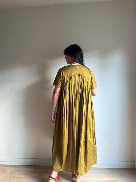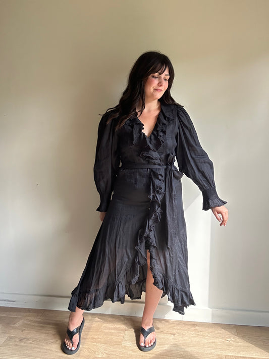 Black Crane Gathered Shoulder Maxi Dress, One Size