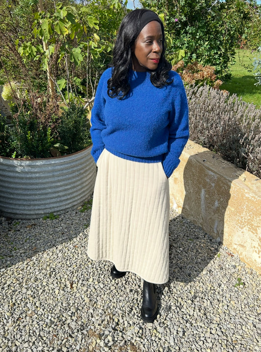 Black Crane Quilted Stripe Circle Skirt, S-M