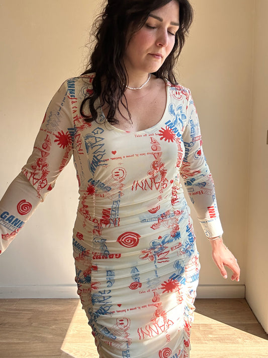 Ganni Graffiti Print Rouched Dress, 44
