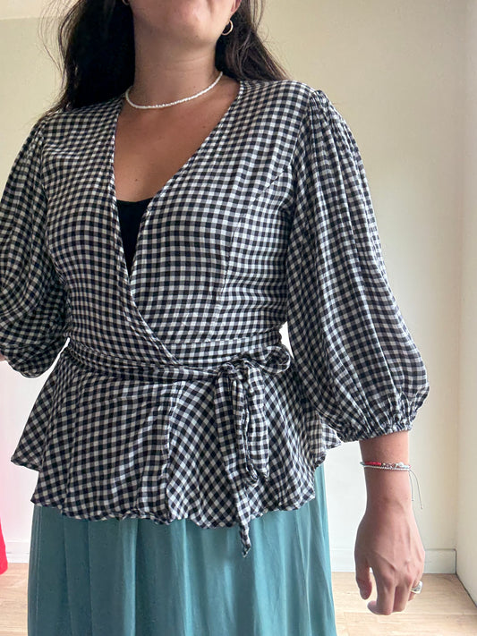 Ganni Gingham Wrap Blouse, 10-12