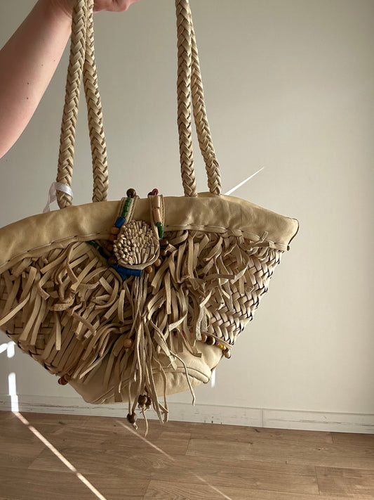 En Shalla Leather Tassel Mini Basket Bag, Small