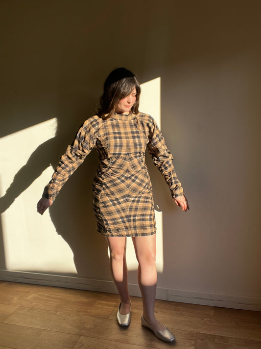 Ganni Check High Neck Mini Dress, 40