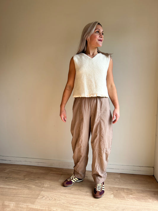 Ganni Barrell Leg Contrast Stitch Trousers, 36