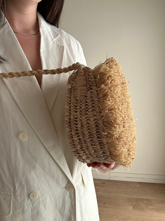 Straw Handmade Shaggy Round Crossbody Bag, O/S