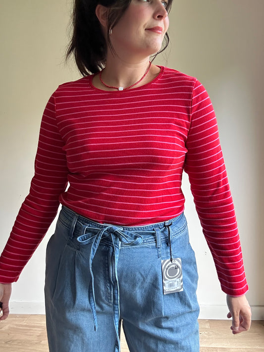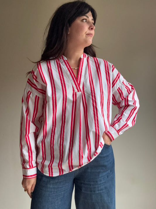 Red Stripe Cotton Blouse, M-L