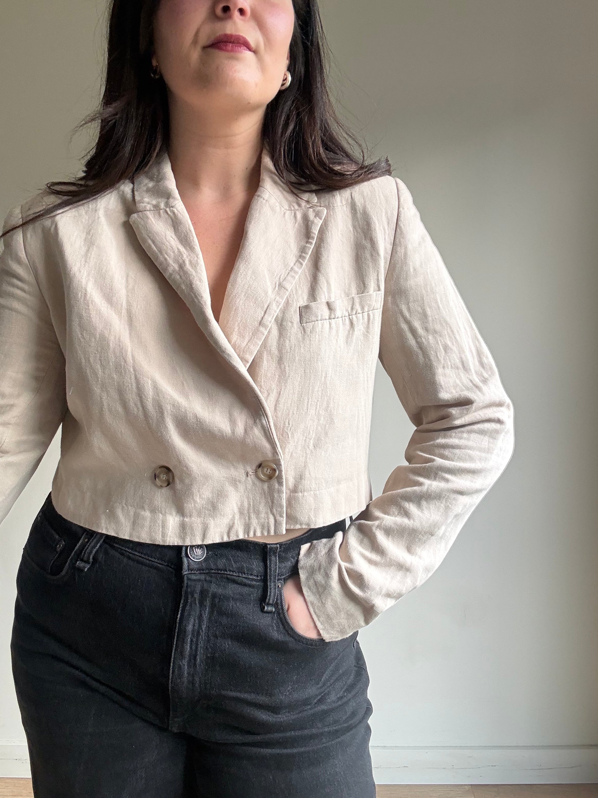 Cream Zara Cropped Blazer, M