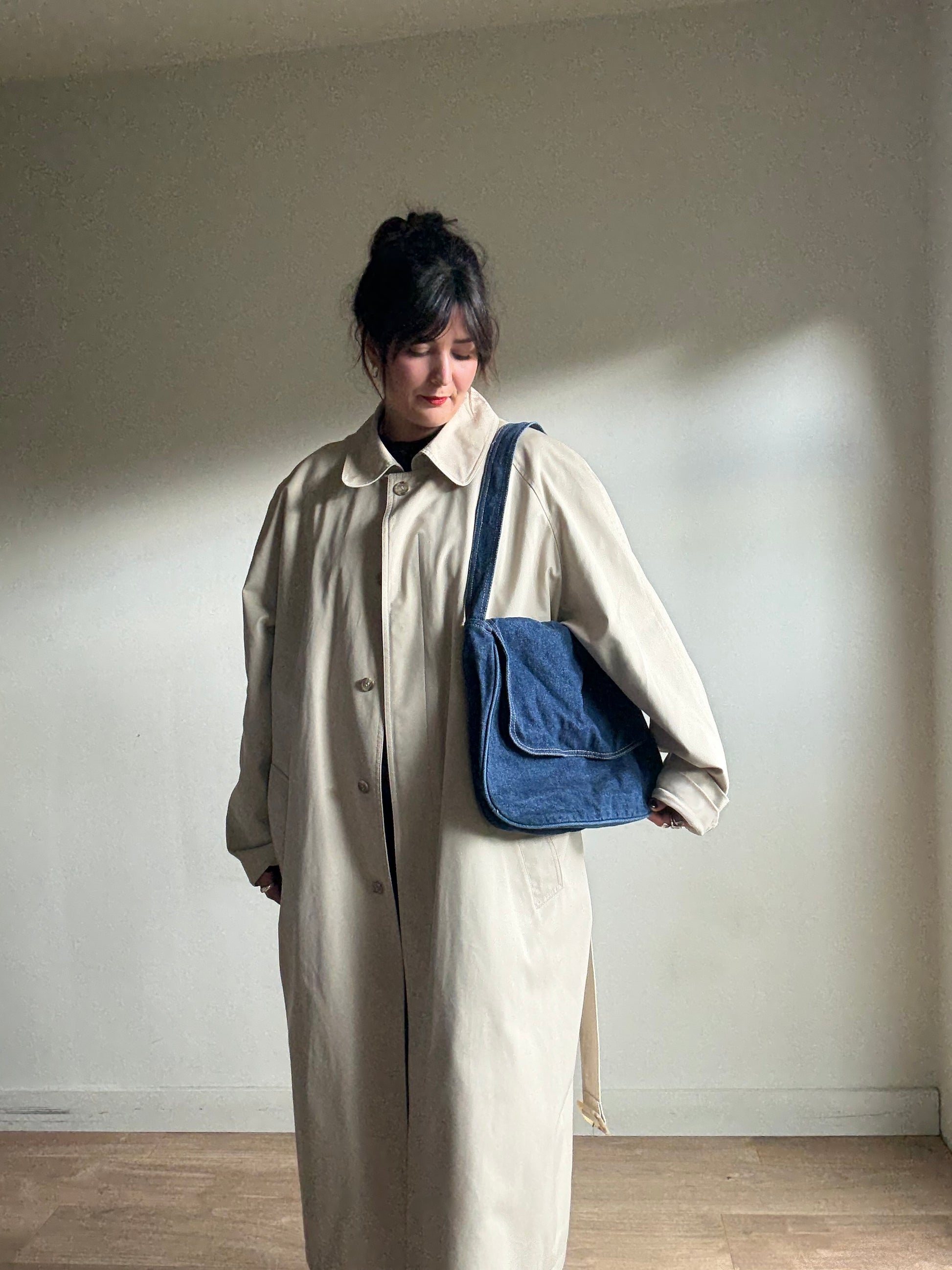 Super cool denim shoulder bag with valcro fastening on the flap and bag opening.