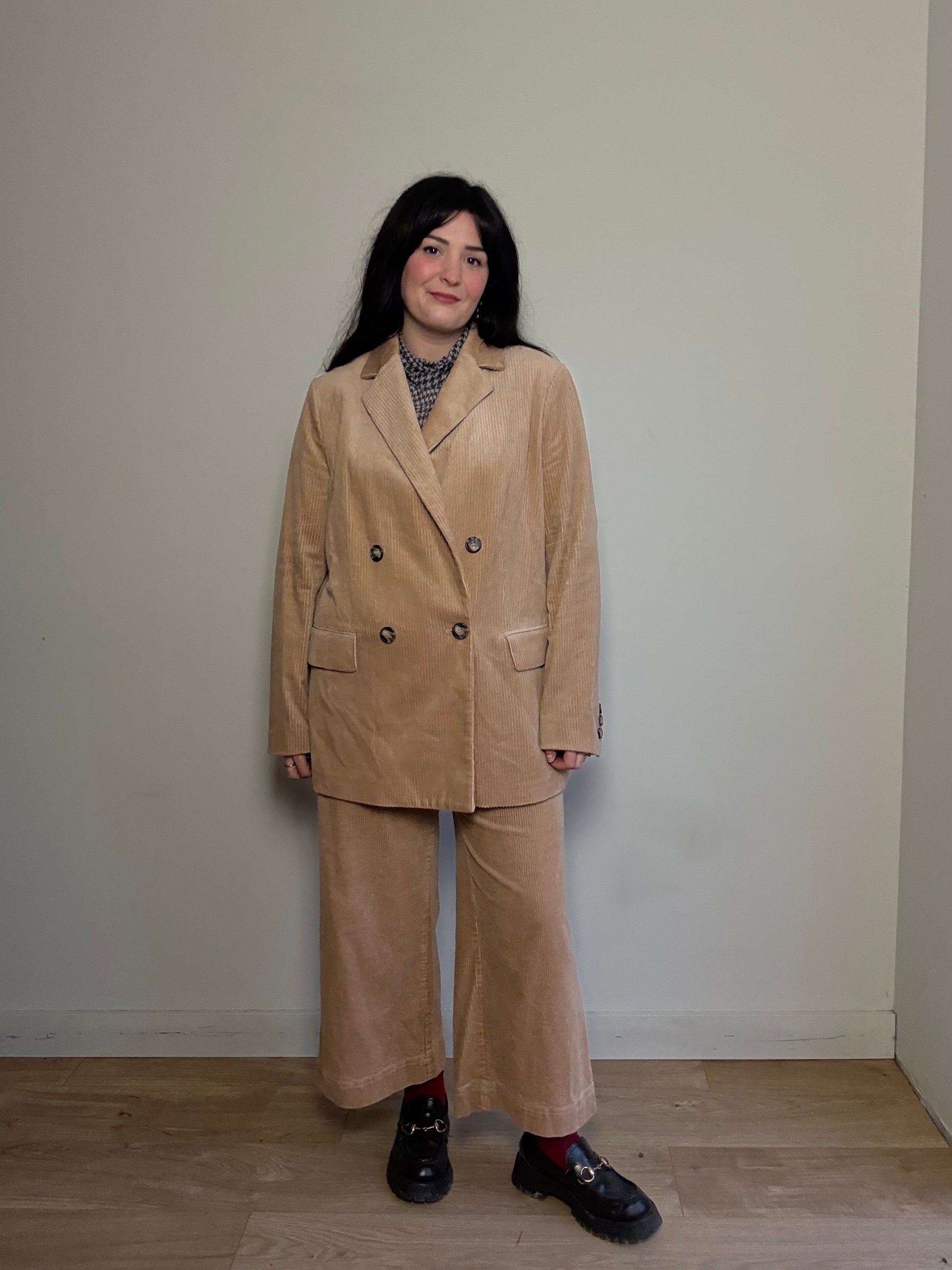 Outer is 100% Cotton. Lovely velvety jumbo corduroy.