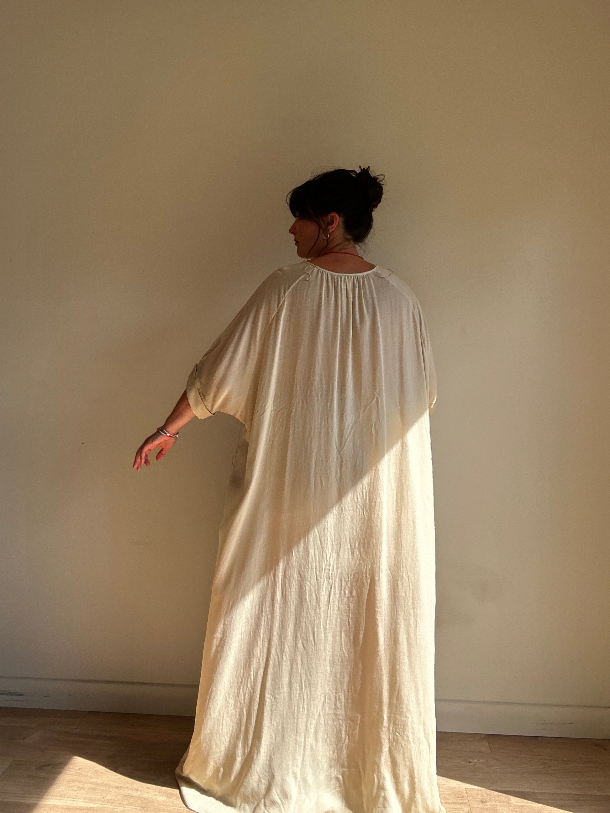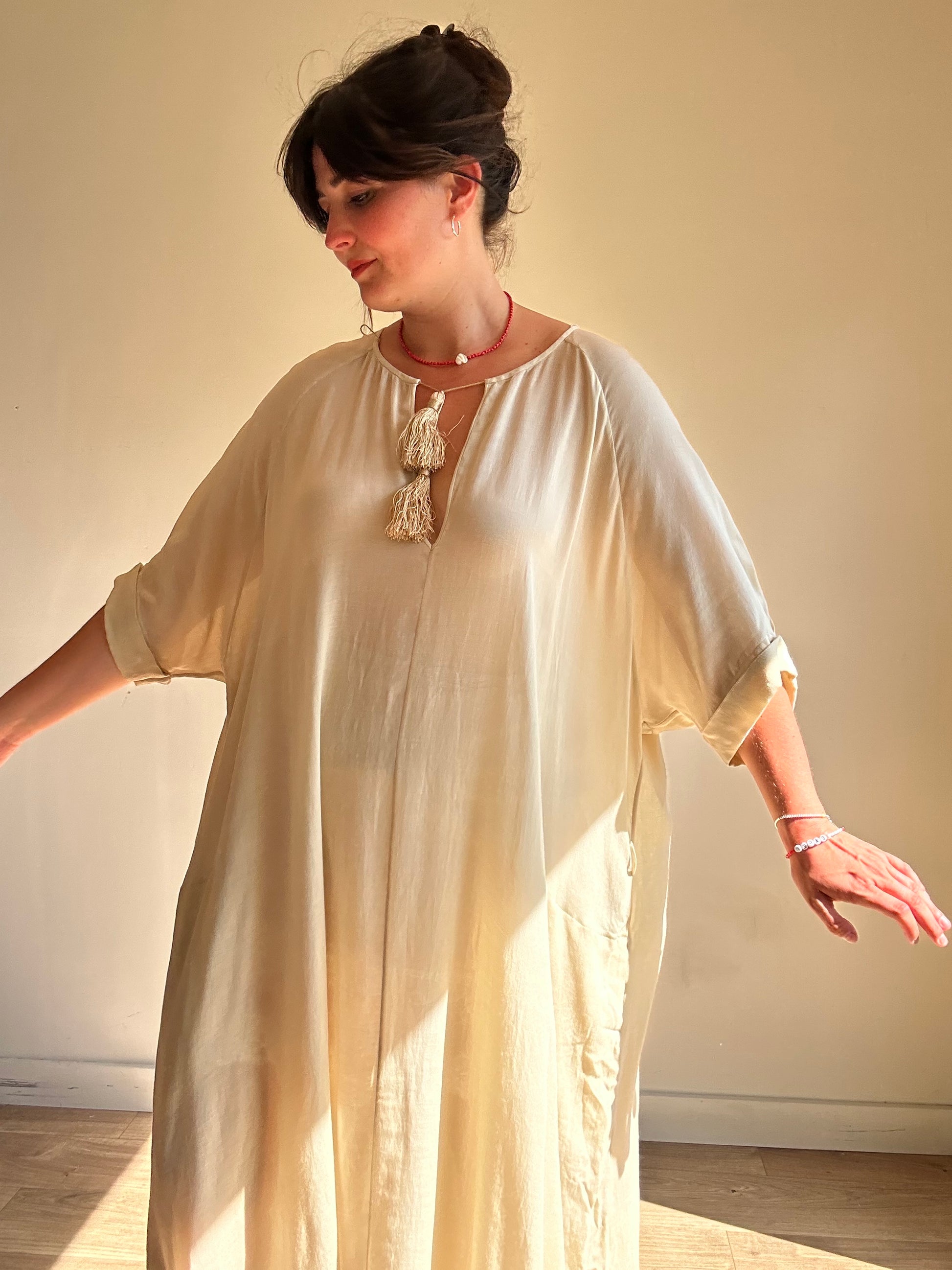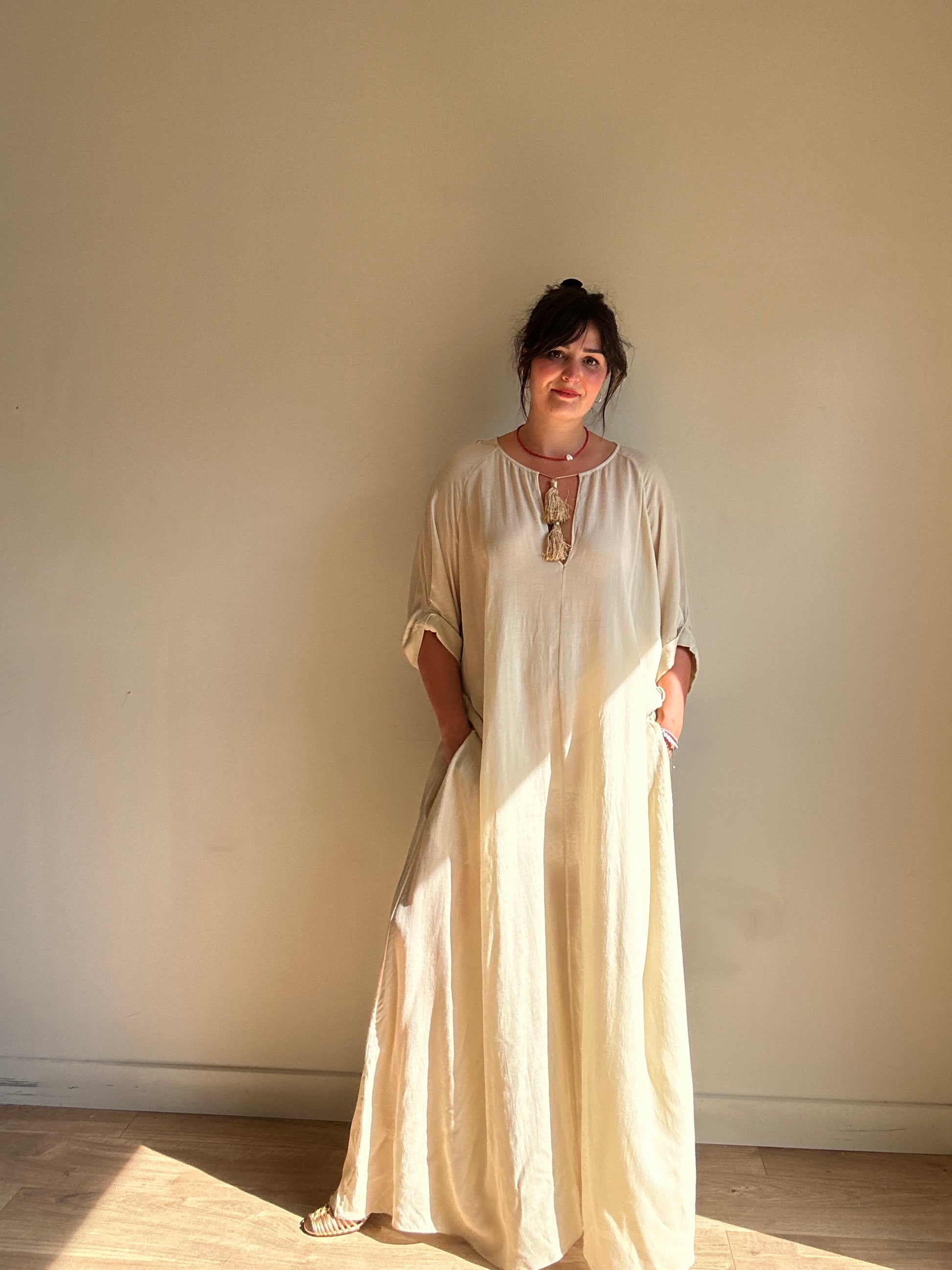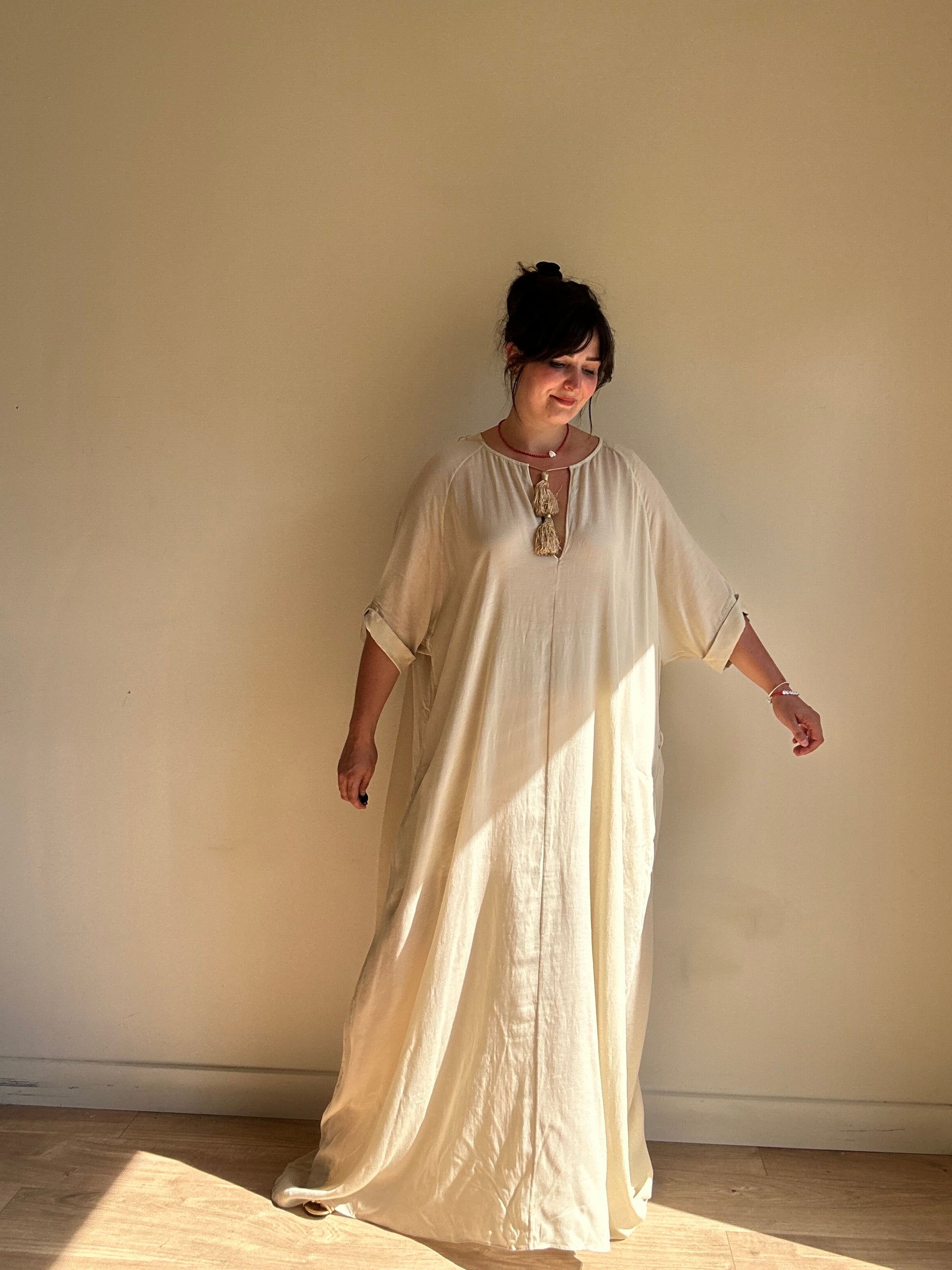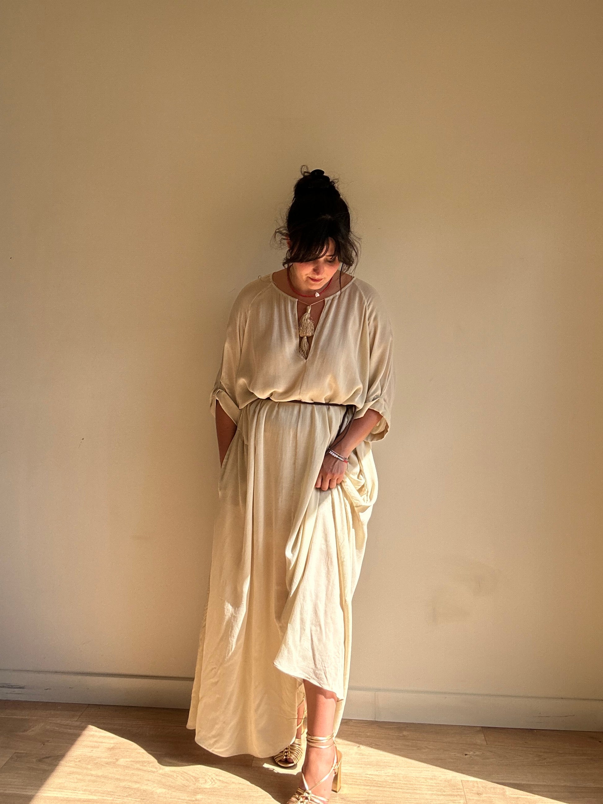 Little belt loops on the side, but no belt included. I’ve used a nice brown rope which works well.