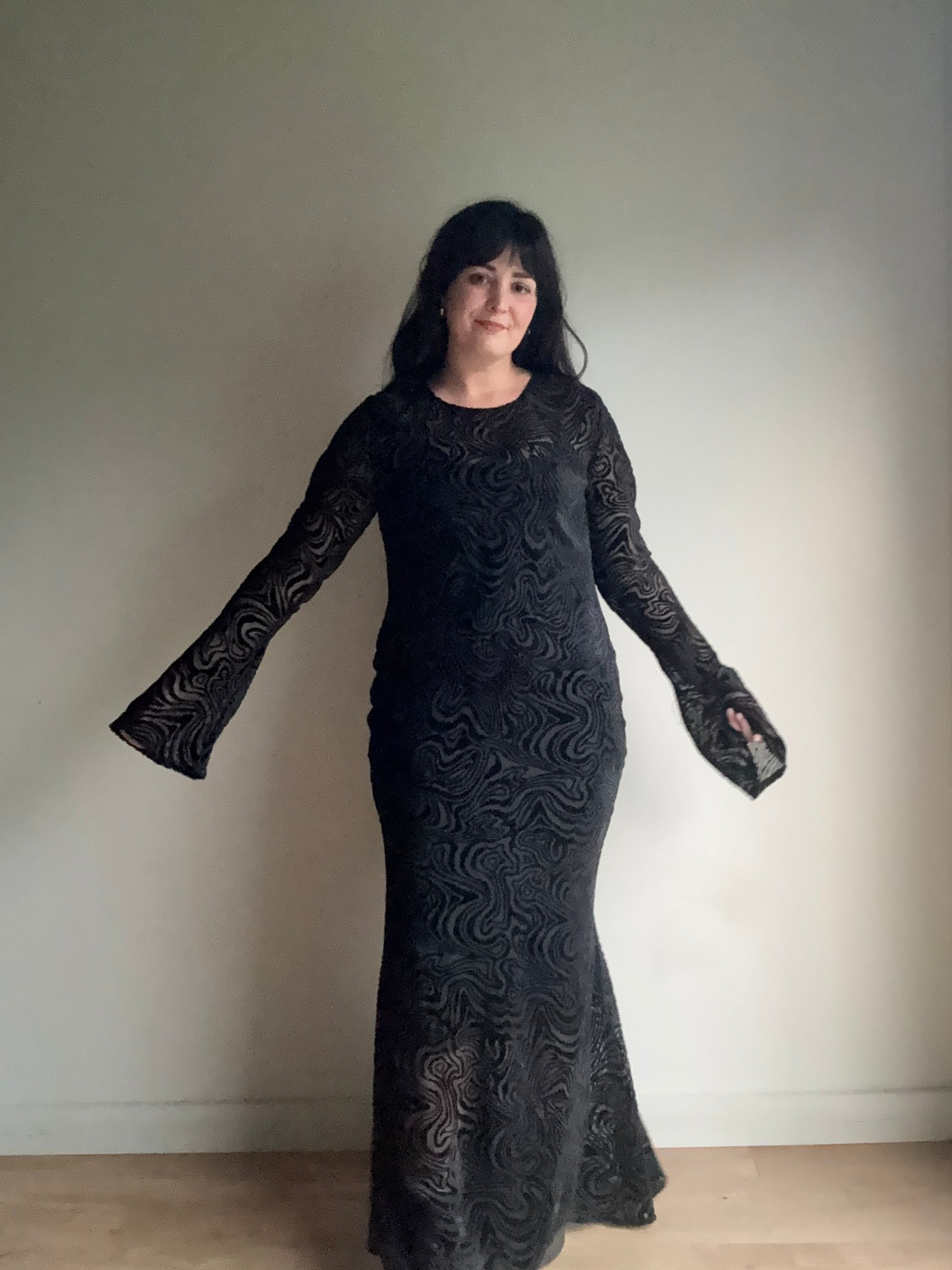 Size XXXL on the label. Very slim fitting and I recommend it’s best on a UK 14. Shown here on a UK 12-14.