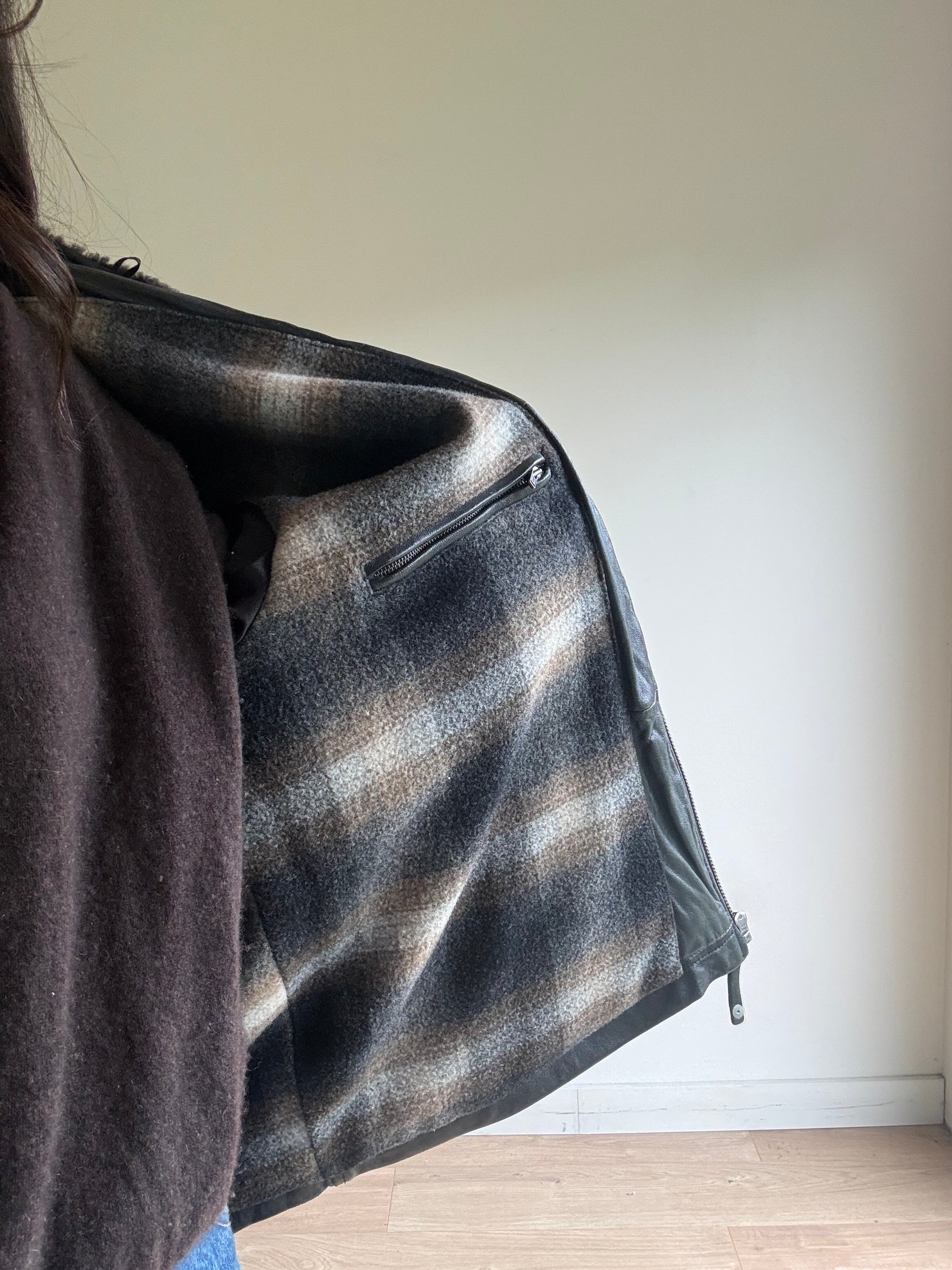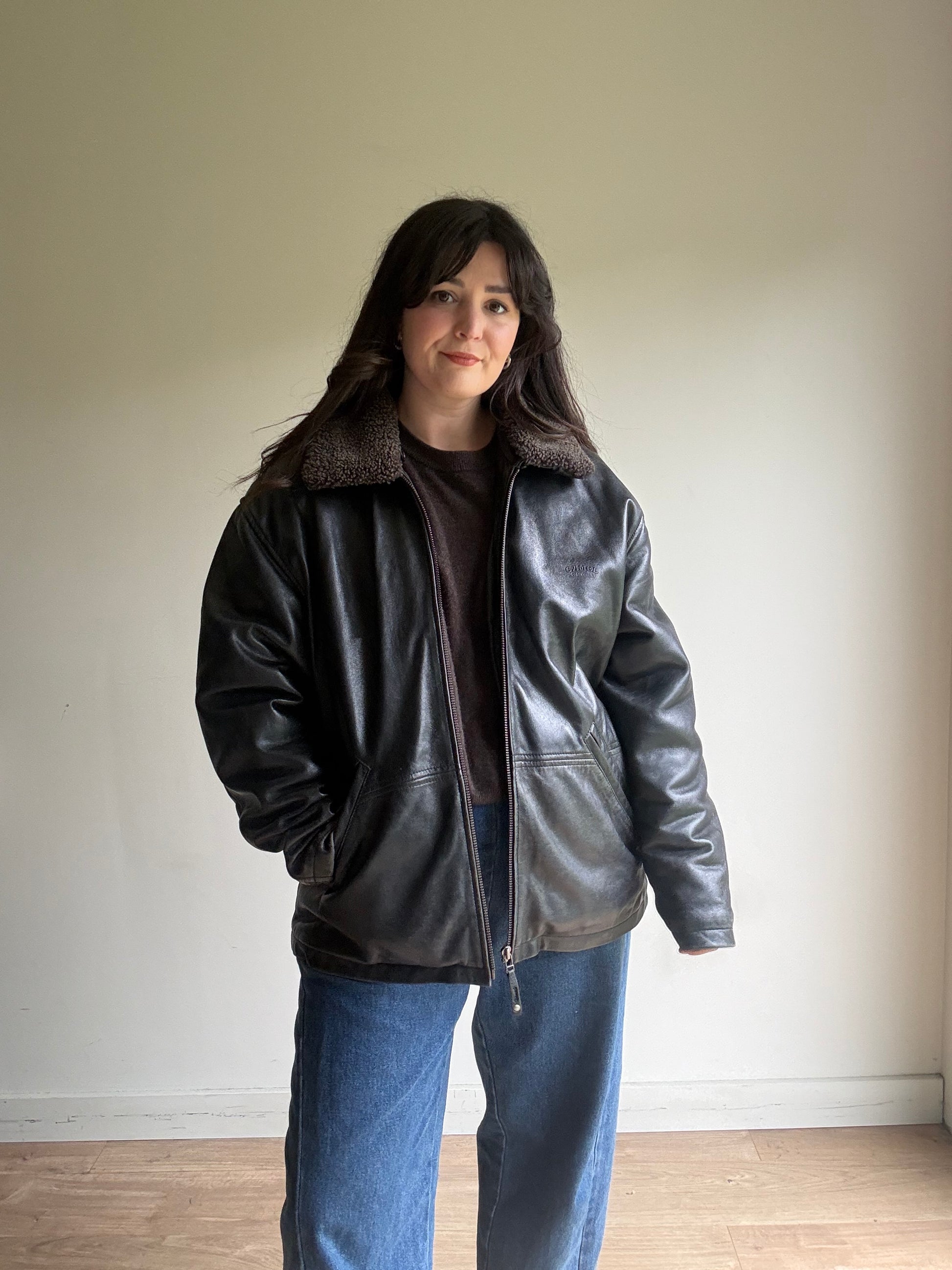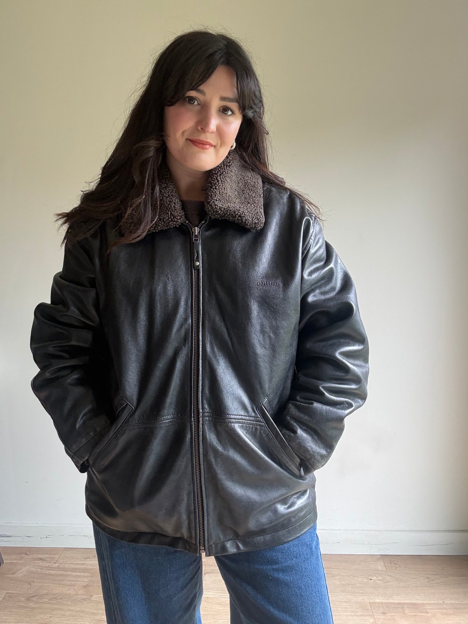 Leather Bomber Jacket with Cosy Collar, L-XL
