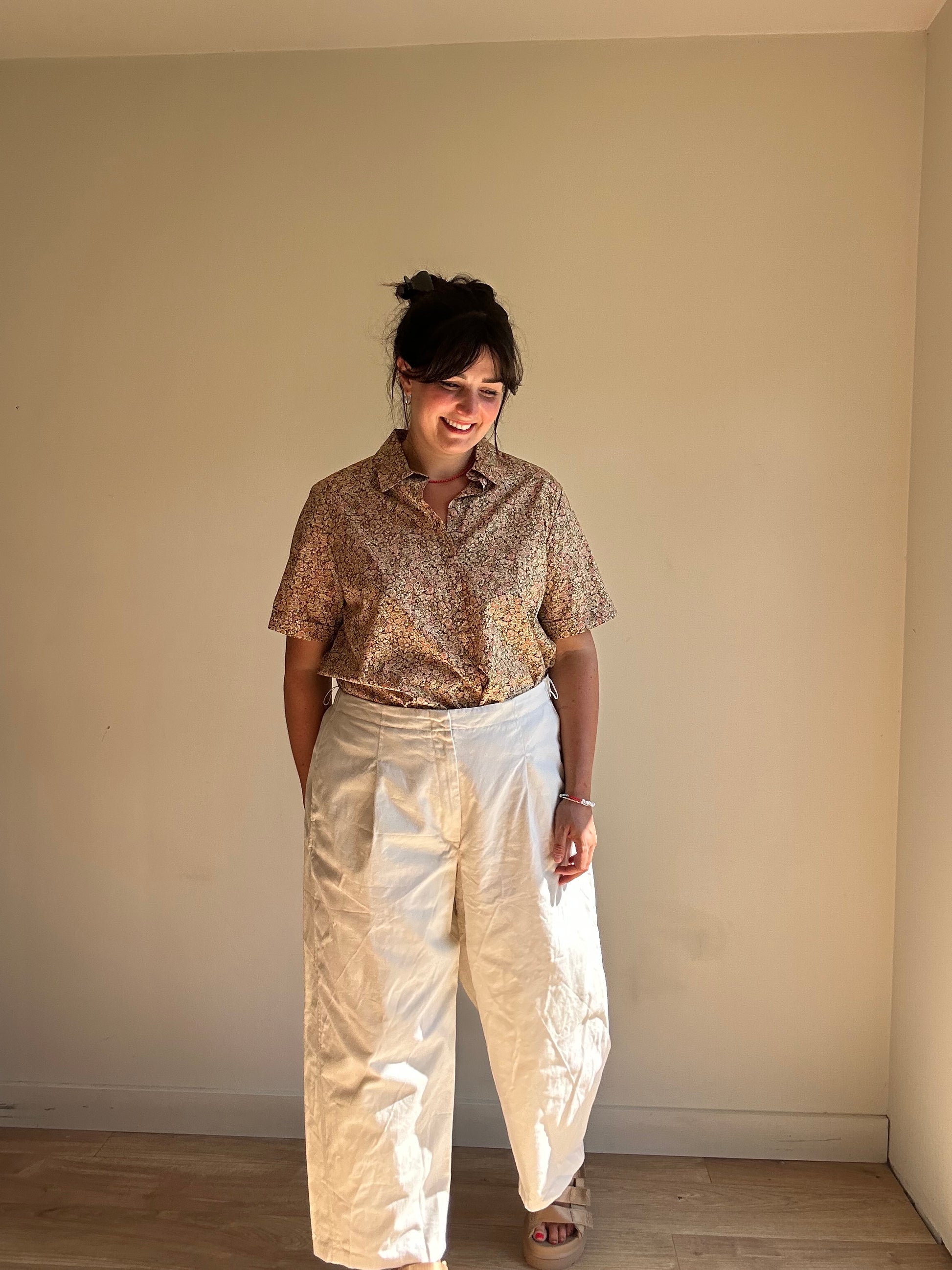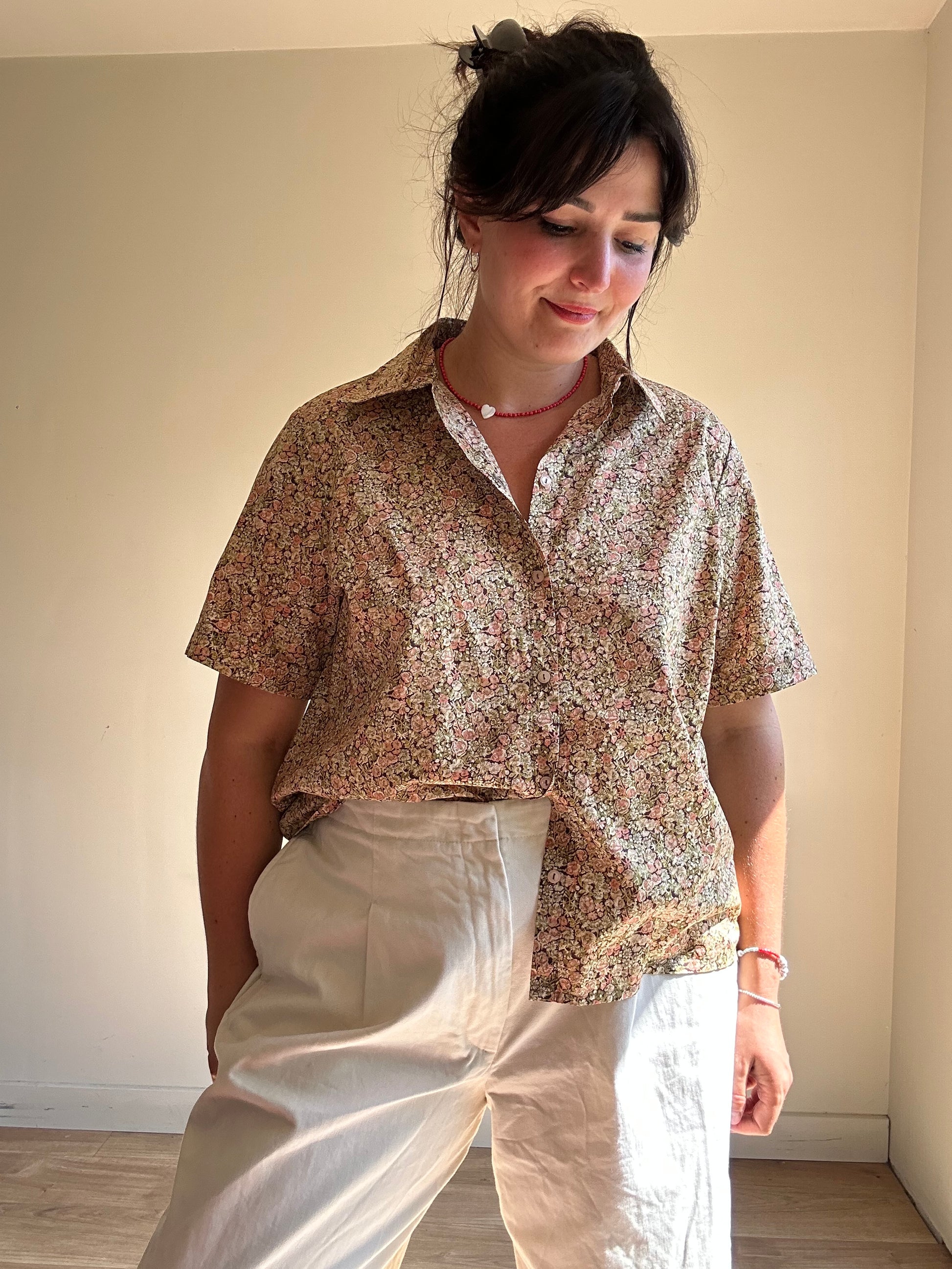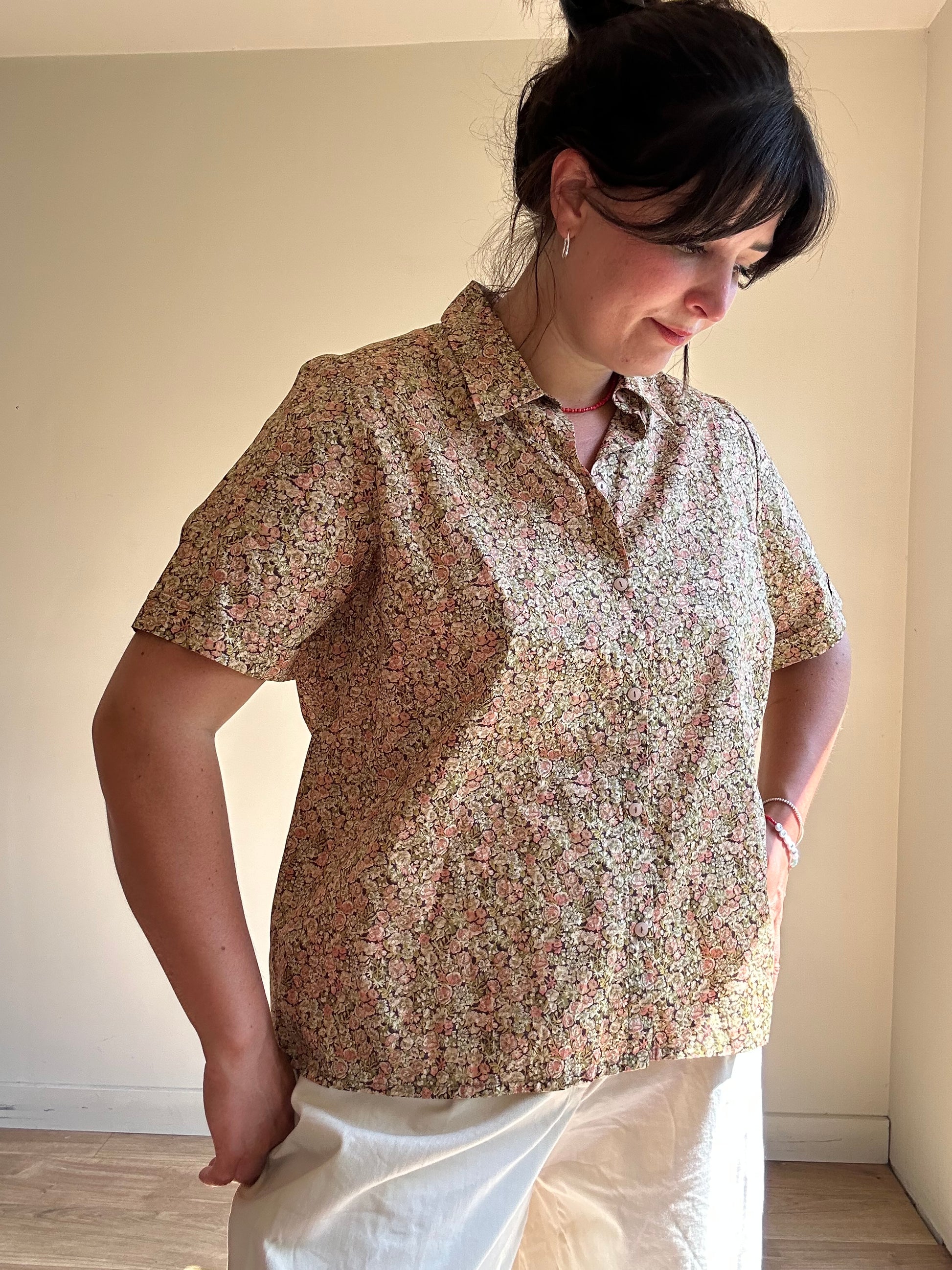 100% organic cotton in Liberty Print. Very soft and lightweight fabric.