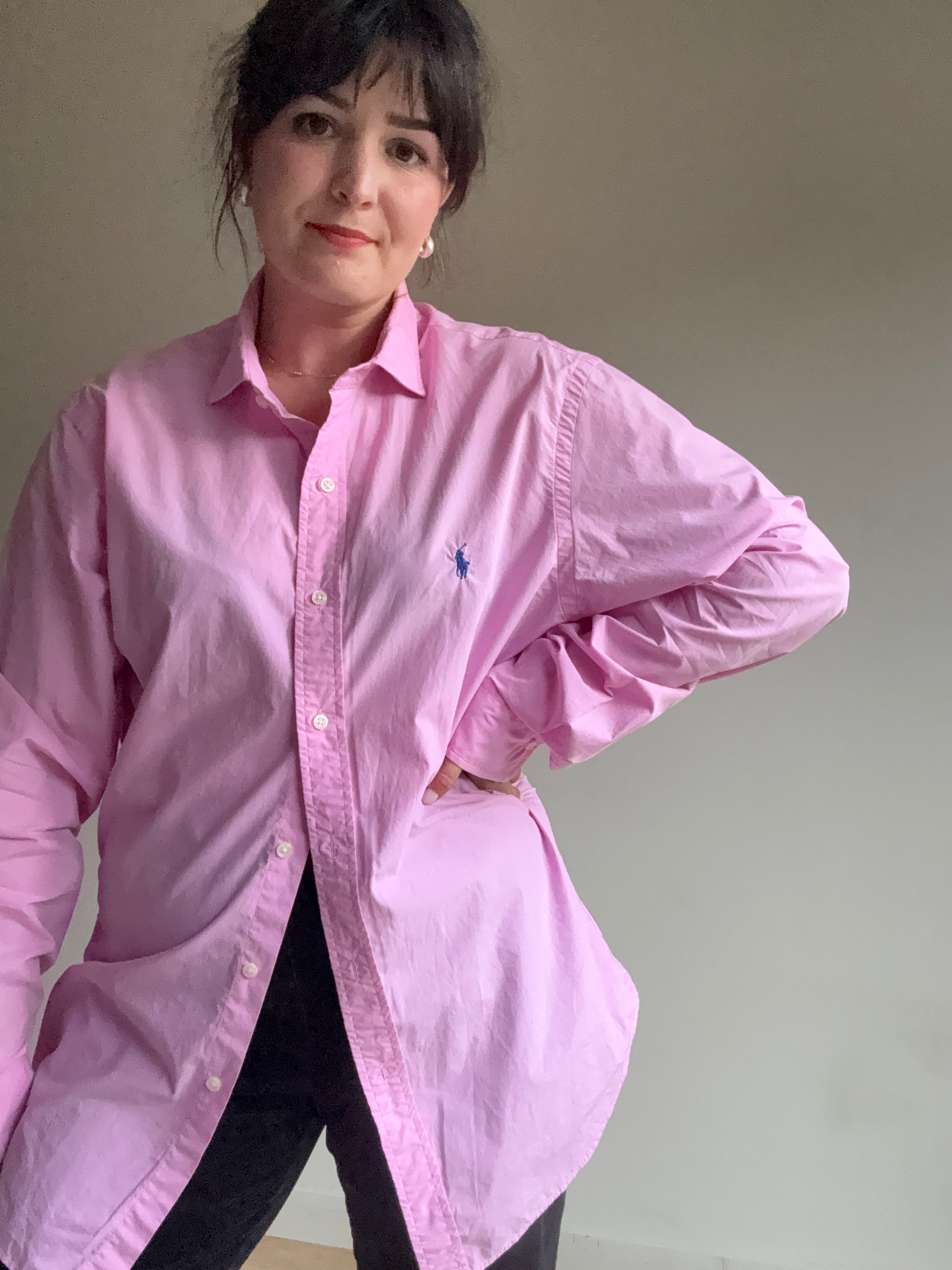 Pink & Navy Polo Ralph Lauren Cotton Classic Shirt, L