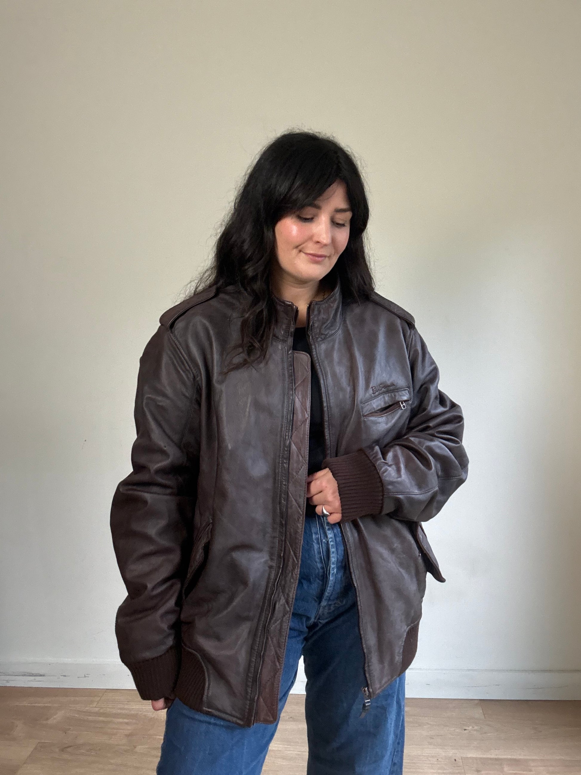 Vintage Ben Sherman Leather Bomber Jacket, XL