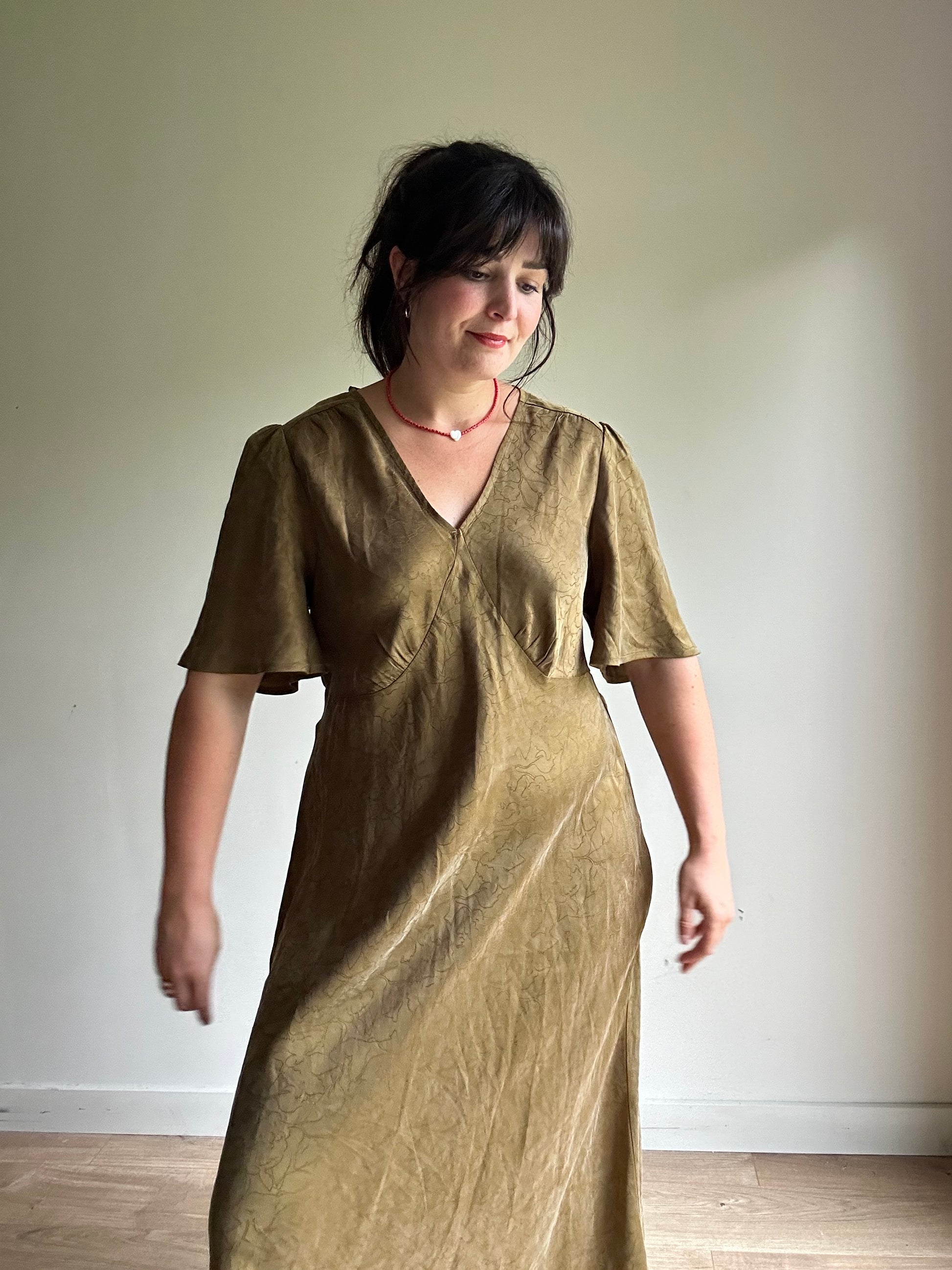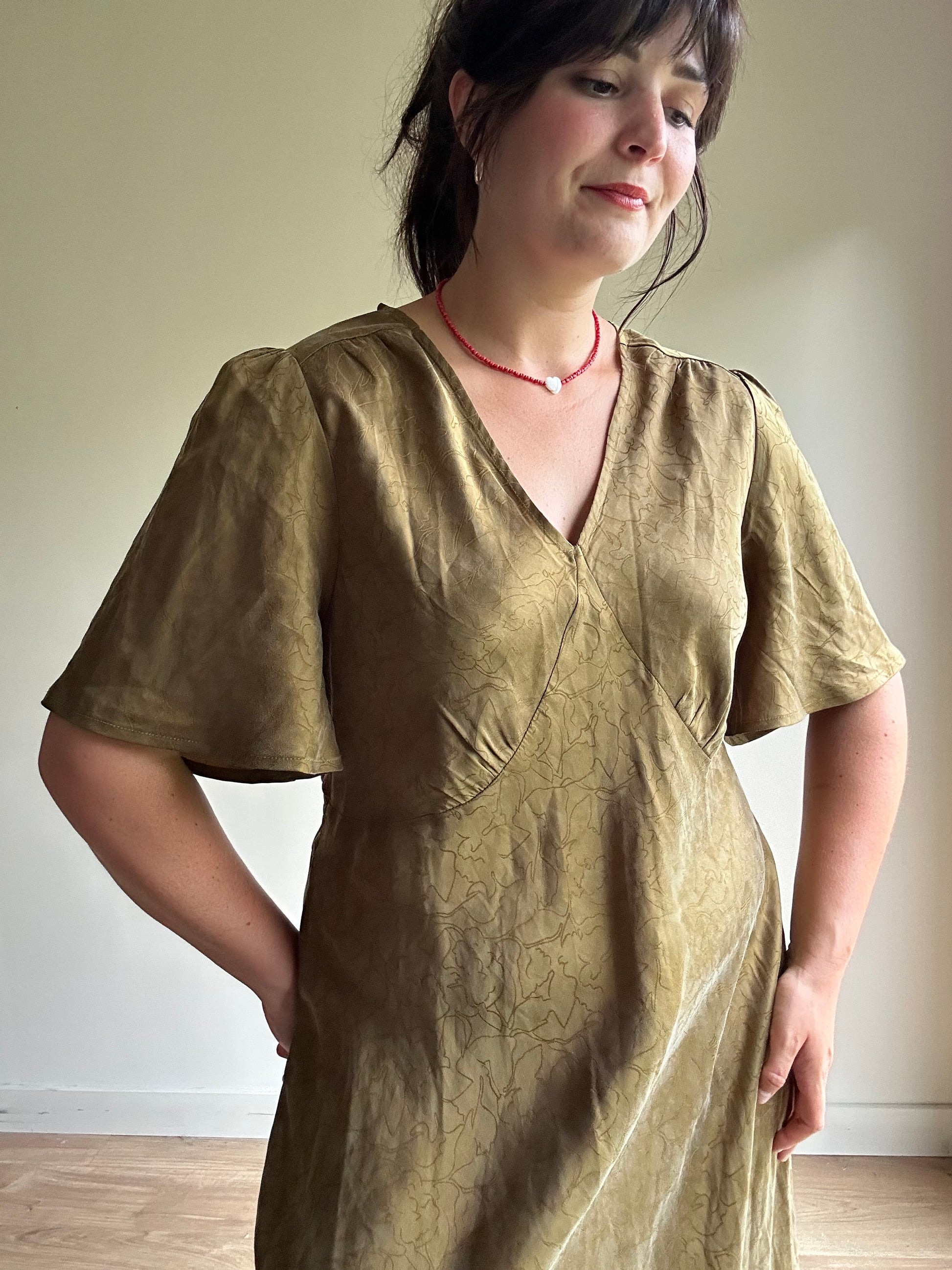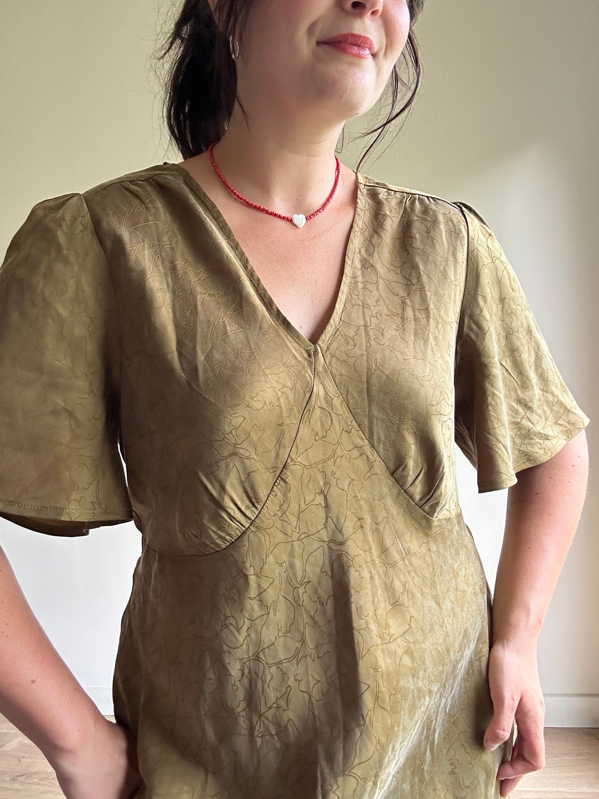 Gorgeous feminine shape with little cap sleeves and shaping on the chest.