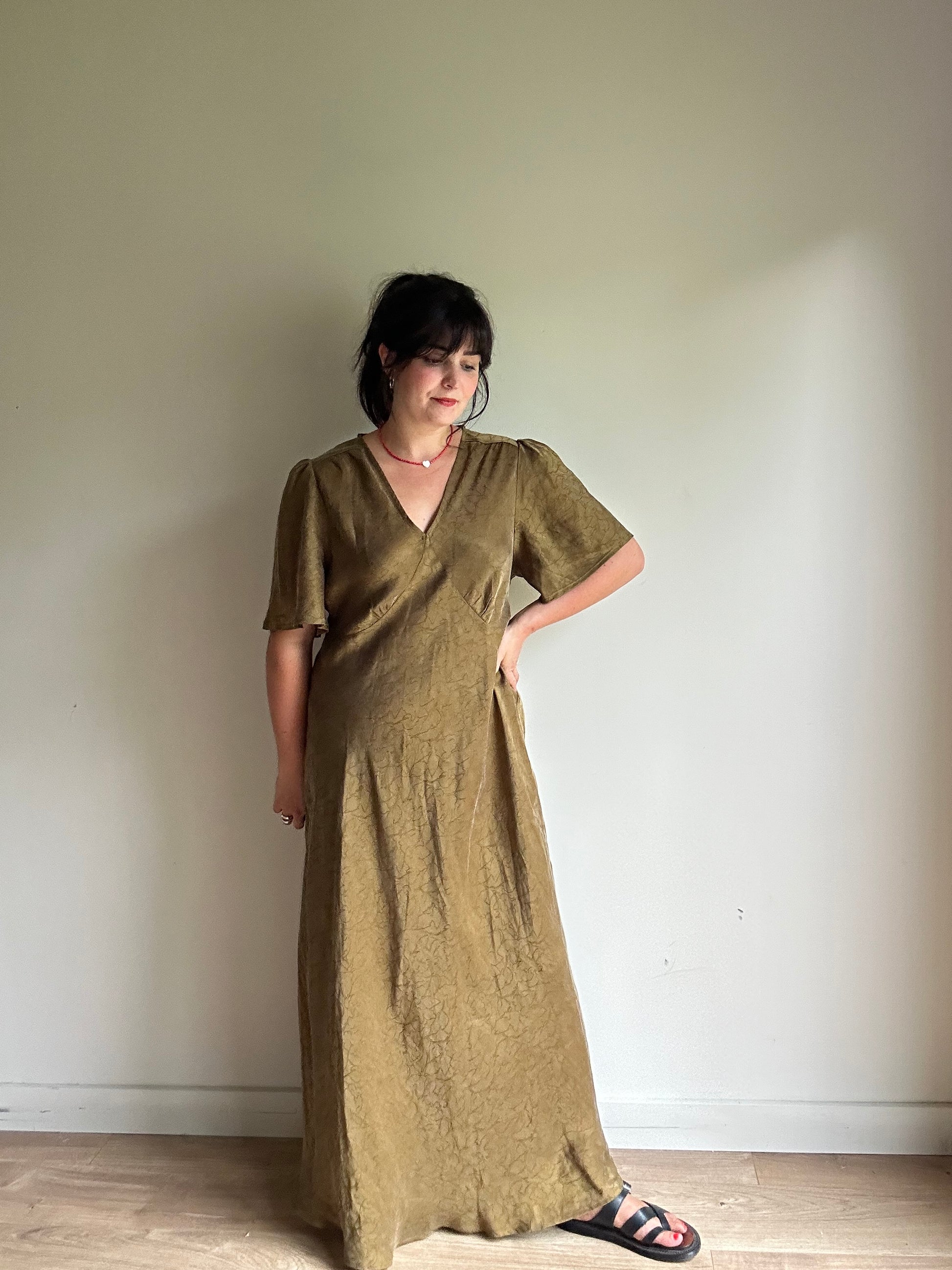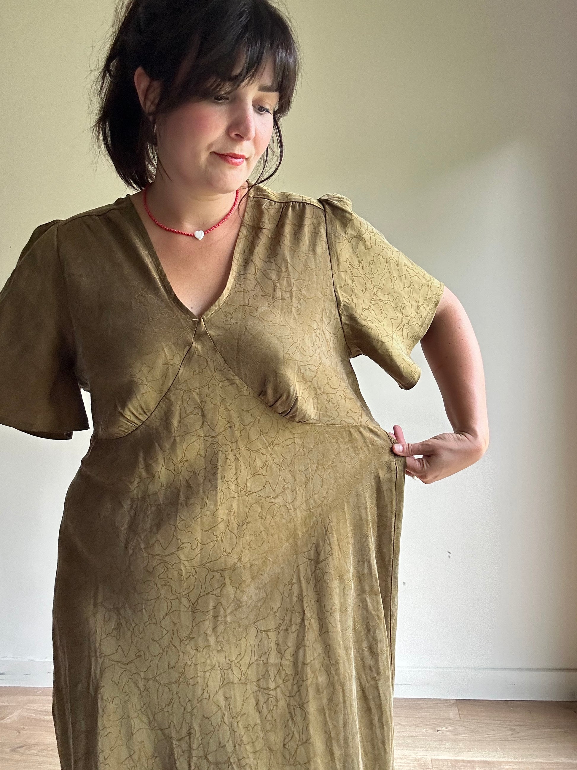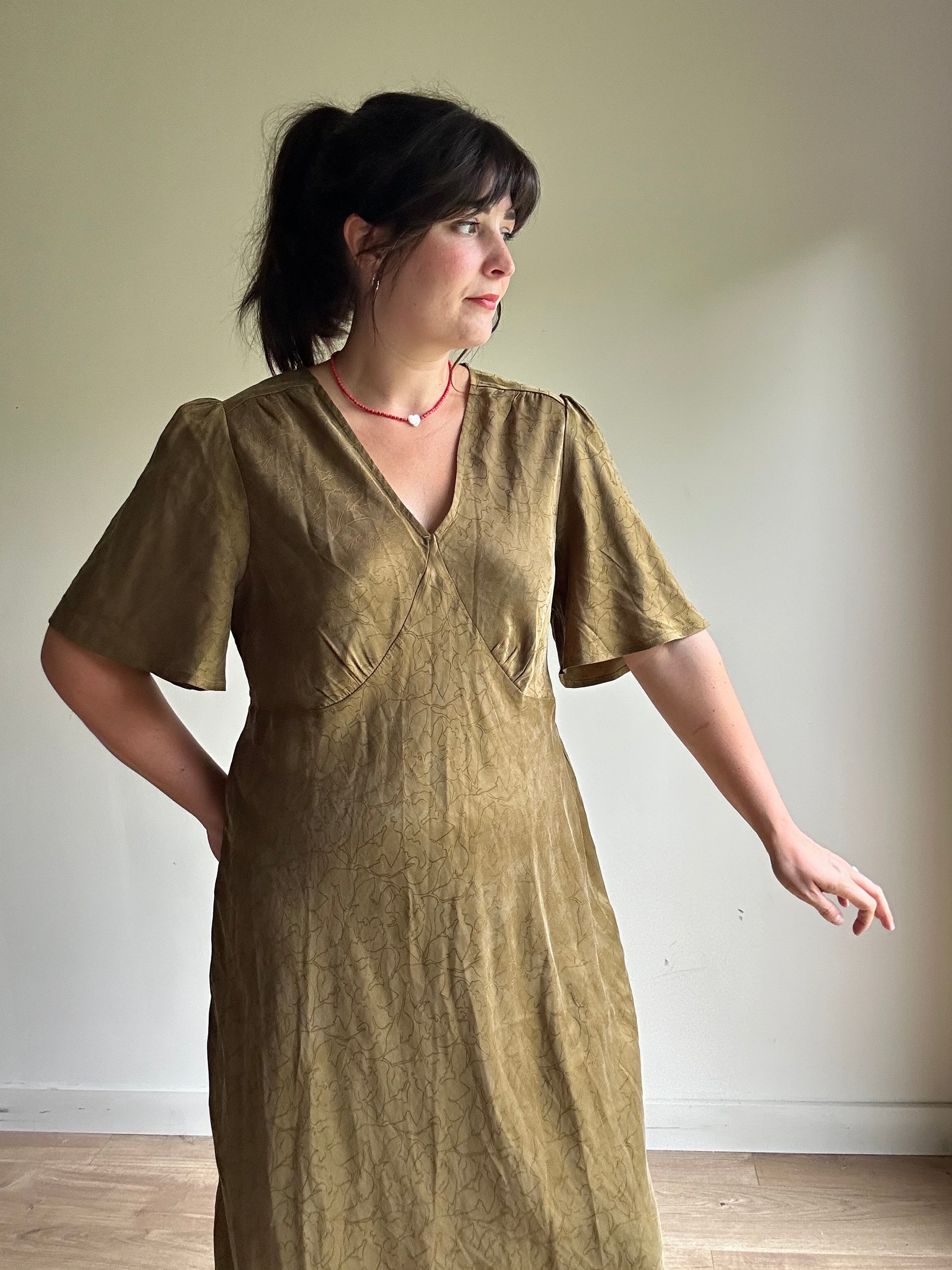 Gorgeous feminine shape with little cap sleeves and shaping on the chest.