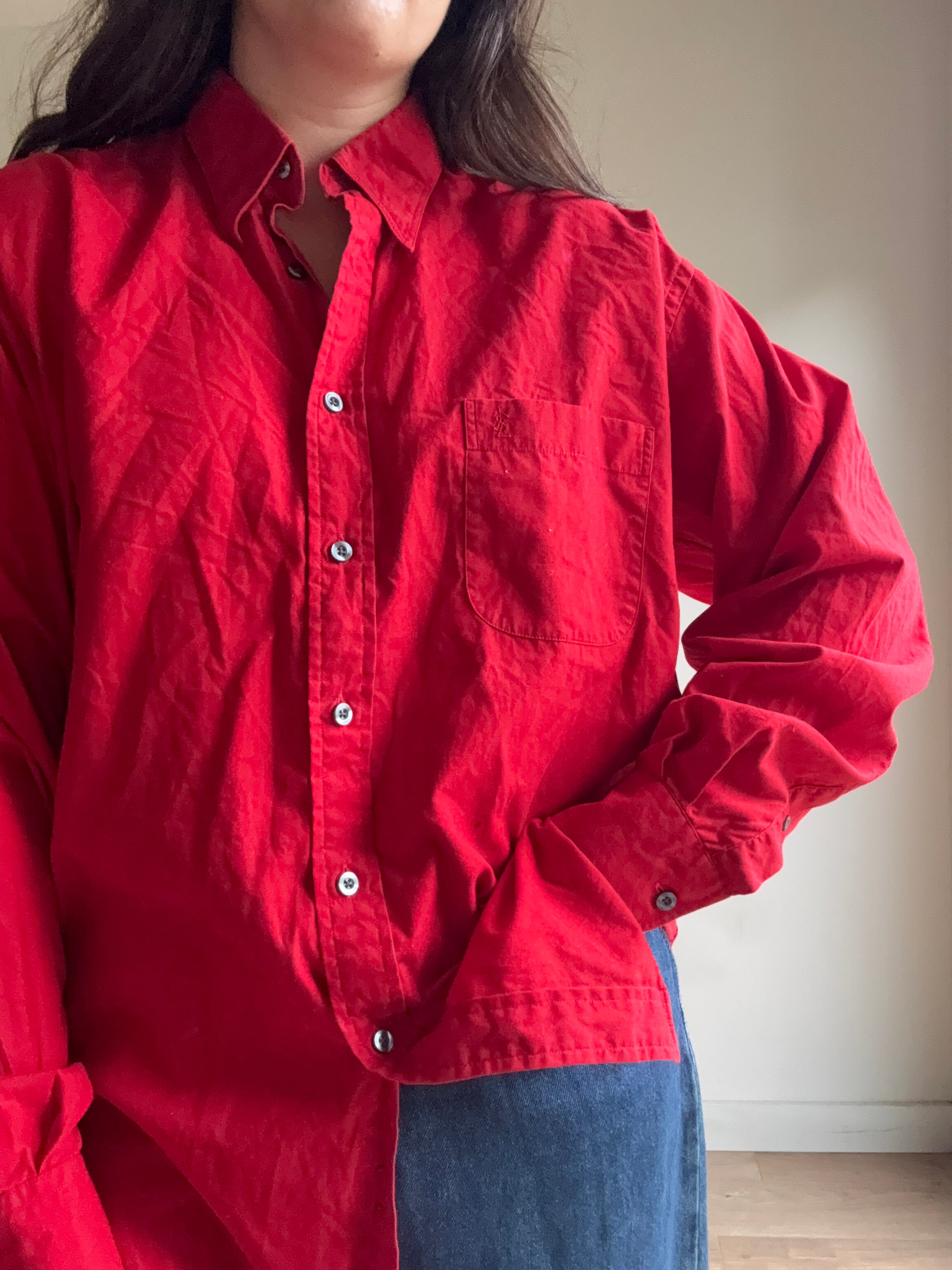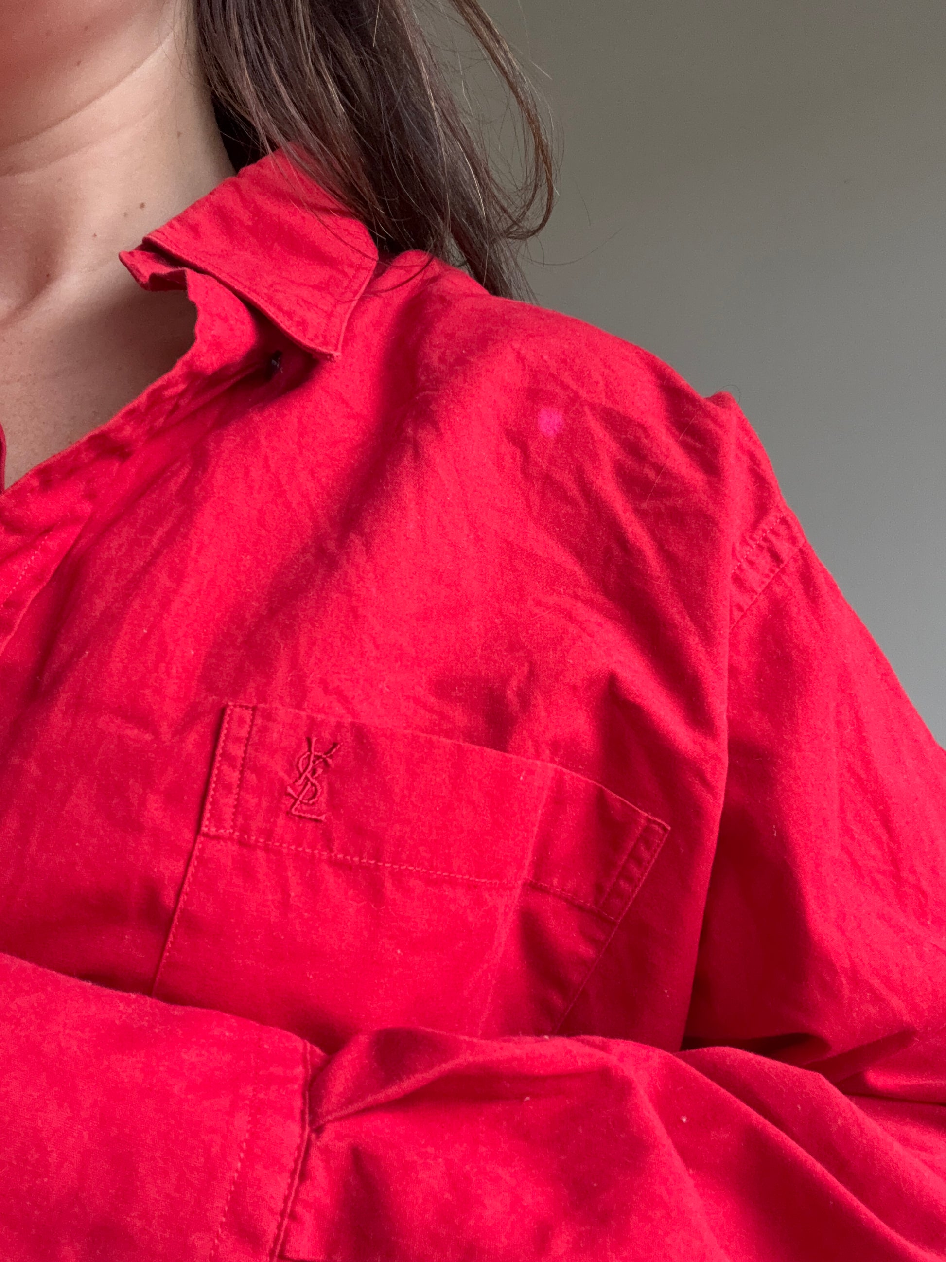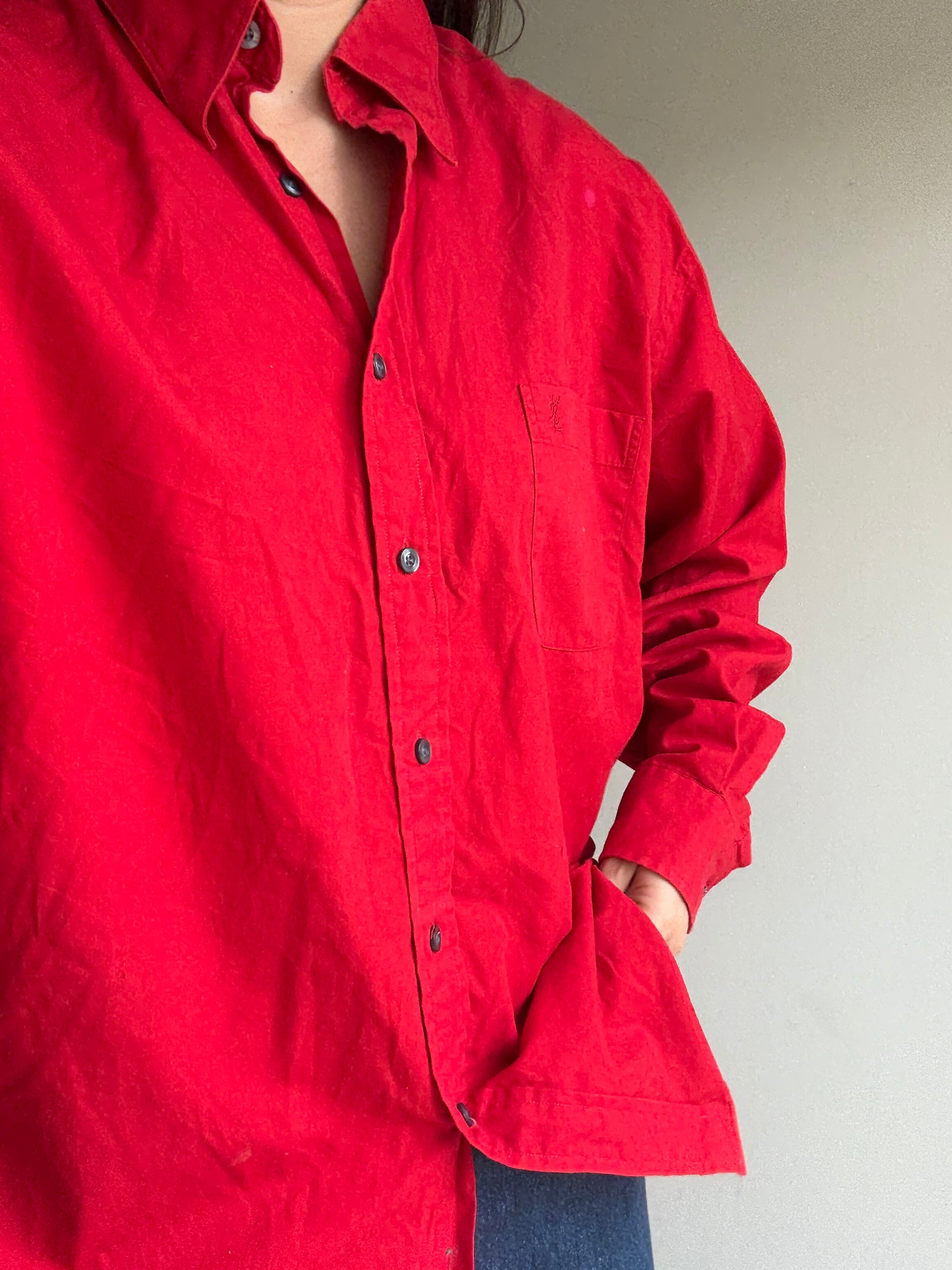 Stunning red tone with chest pocket and YSL embroidered.