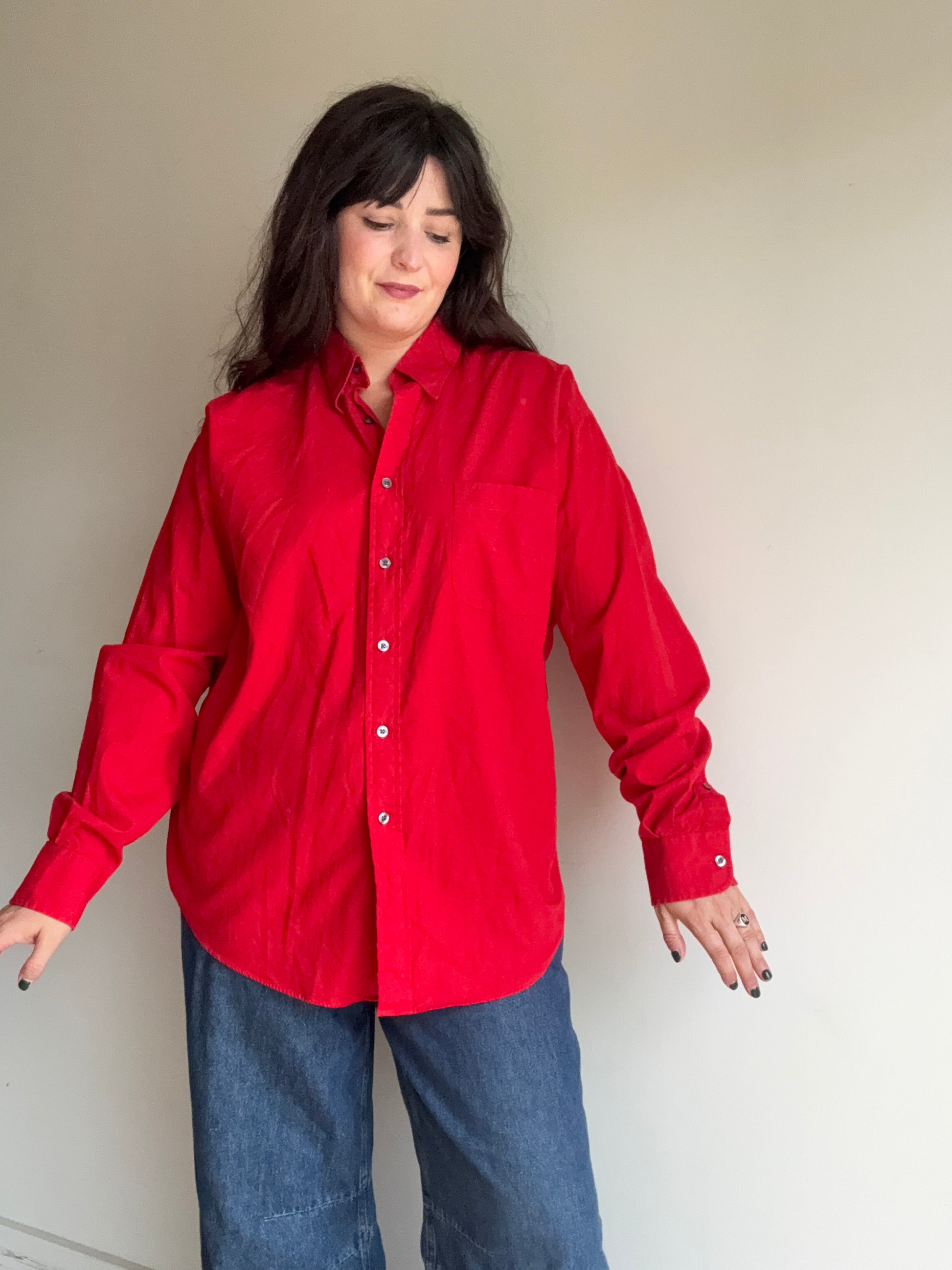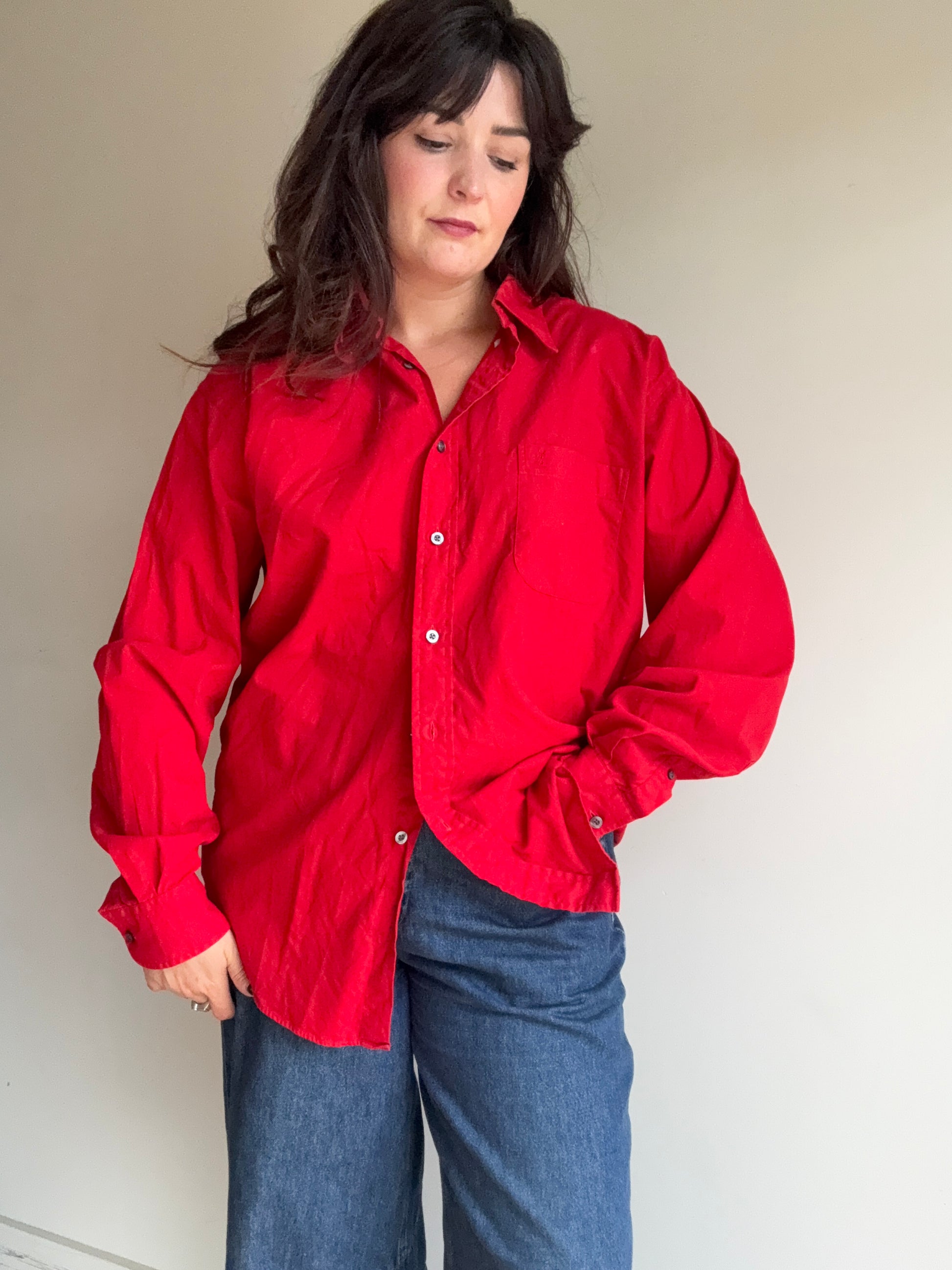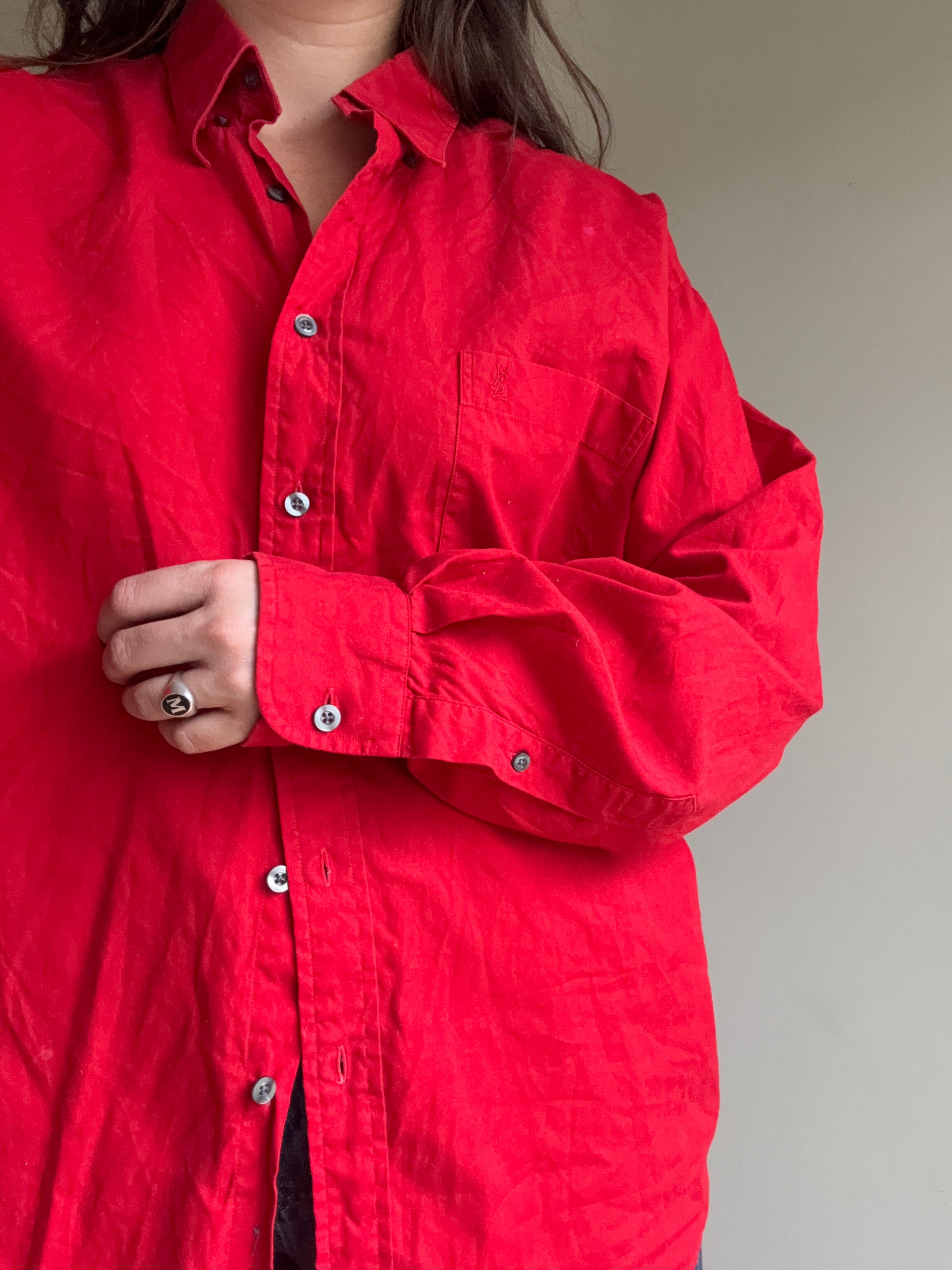 Stunning red tone with chest pocket and YSL embroidered.